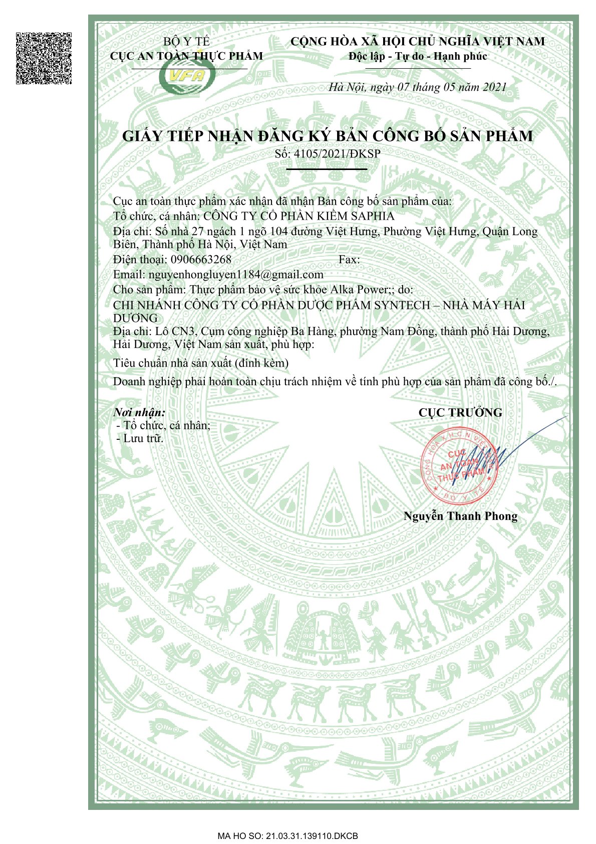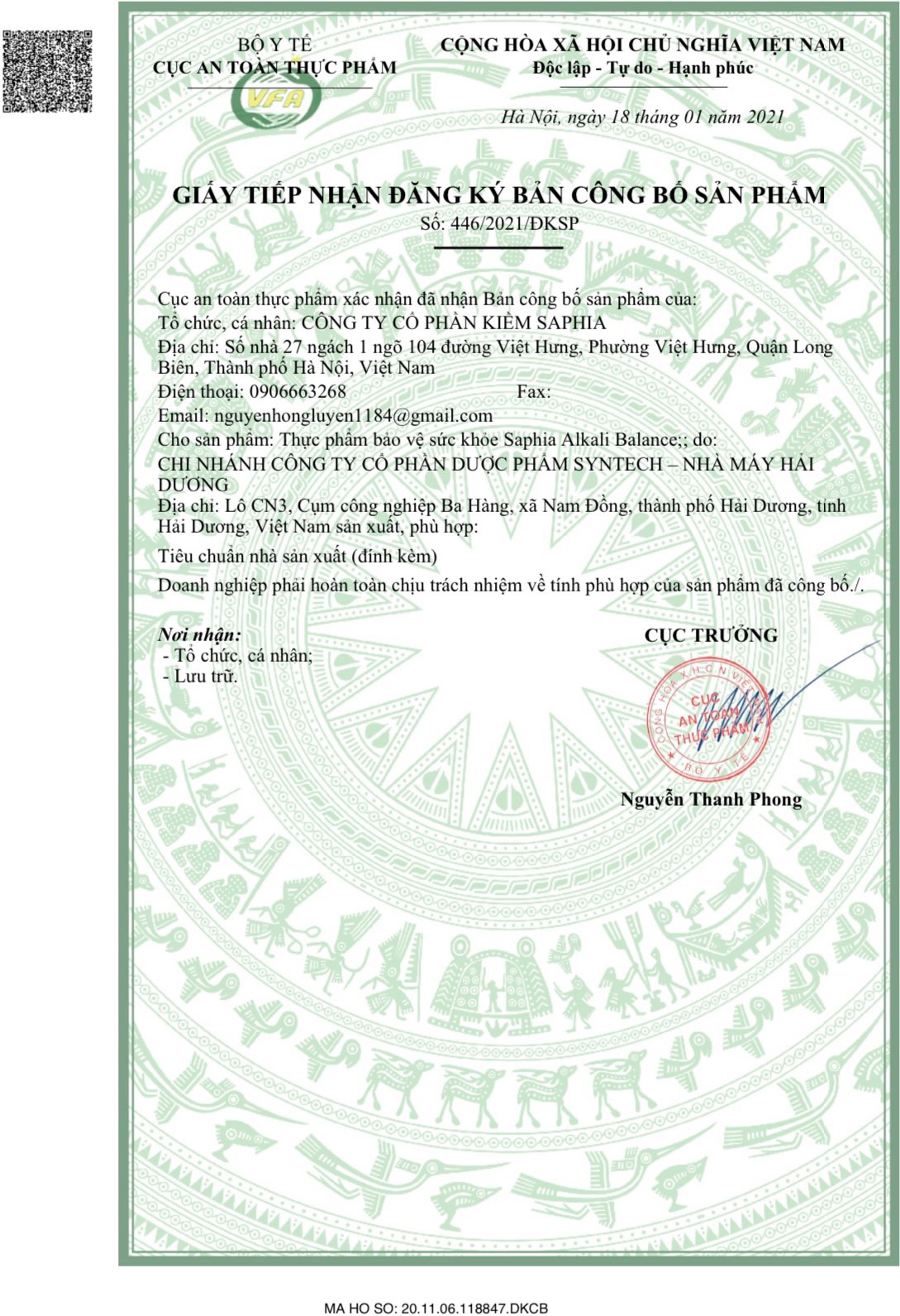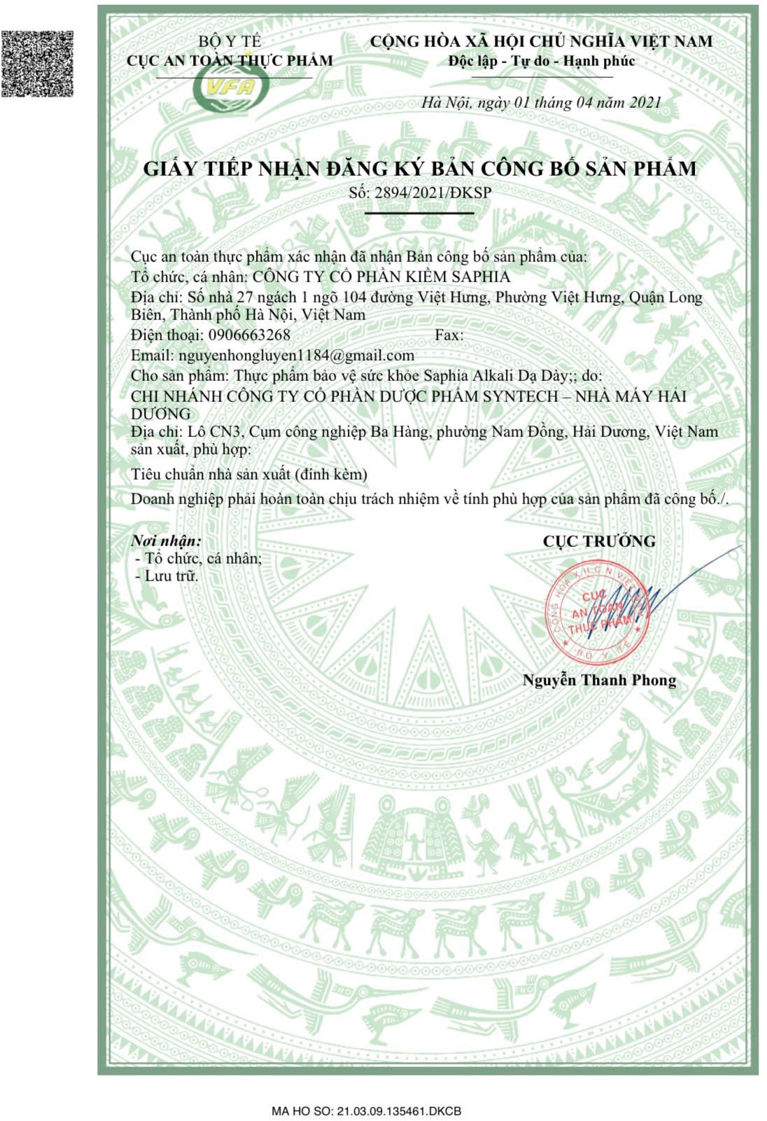 2. TIẾP NHẬN CÔNG BỐ SẢN PHẨM